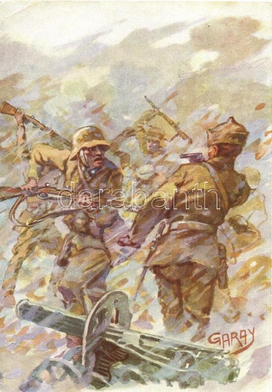 Beschreibung: Kocsis Gyula megsemmisíti az ellenséges osztagot / WWII Hungarian military '1943 Haditudósító Kiállítás a Pesti Vigadóban' So. Stpl s: Garay (EB)