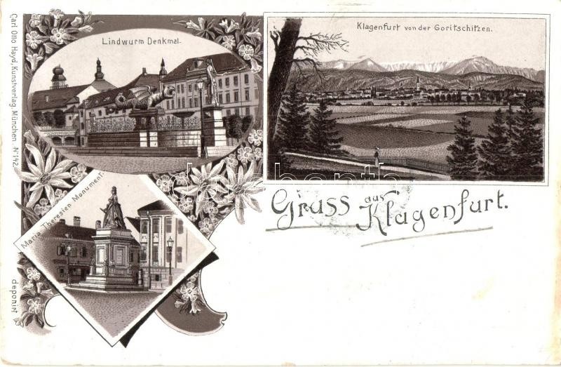 1898 Klagenfurt, von der Goritschitzen, Lindwurm Denkmal, Maria Theres... https://www.darabanth.com/de/307-Fernauktion/307.0/Ansichtskarten/Osterreich~400016/1898-Klagenfurt-von-der-Goritschitzen-Lindwurm-Denkmal-Maria-Theresien-Monument-statues-Carl-O~II1666248