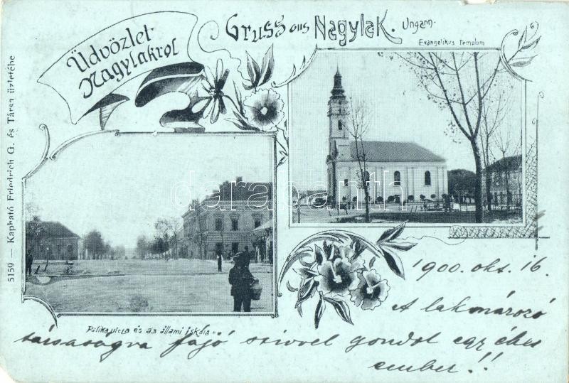 Nagylak, Nadlac; Palika utca, evangélikus templom / street view with c... https://www.darabanth.com/de/307-Fernauktion/307.0/Ansichtskarten/Siebenburgen~400006/Nagylak-Nadlac-Palika-utca-evangelikus-templom-street-view-with-church-Art-Nouveau-floral-E~II1665797
