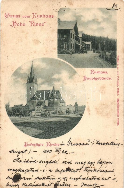 Beschreibung: Szebenjuharos, Hohe Rinne, Paltinis; gyógyház és vártemplom / Befestigte Kirche, Kurhaus / castle church, spa sanatorium (fl)