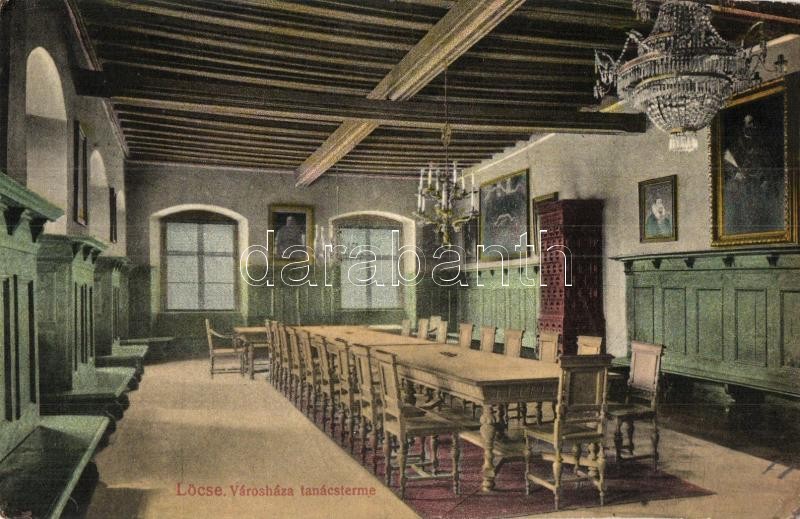 Lőcse, Levoca; Városháza tanácsterme, belső / town hall's conference r... https://www.darabanth.com/de/307-Fernauktion/307.0/Ansichtskarten/Slowakei~400007/Locse-Levoca-Varoshaza-tanacsterme-belso-town-halls-conference-room-interior-EK~II1665955