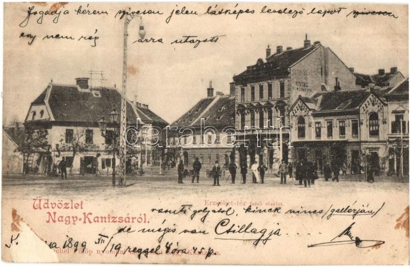 Beschreibung: 1899 Nagykanizsa, Erzsébet tér felső része, hotel (vágott / cut)