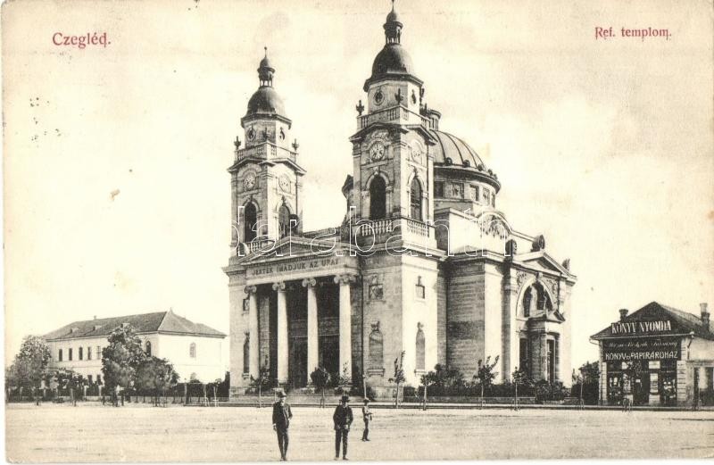 Cegléd, Református templom, könyvnyomda, üzlet. Nagy Elek kiadása (EK) https://www.darabanth.com/de/307-Fernauktion/307.0/Ansichtskarten/Ungarn~400005/Cegled-Reformatus-templom-konyvnyomda-uzlet-Nagy-Elek-kiadasa-EK~II1665879