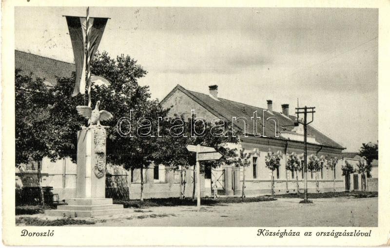 Doroszló, Doroslovo; Községháza, Országzászló, utca / town hall, Hunga... https://www.darabanth.com/de/307-Fernauktion/307.0/Ansichtskarten/Vojvodina~400010/Doroszlo-Doroslovo-Kozseghaza-Orszagzaszlo-utca-town-hall-Hungarian-flag-street~II1663092