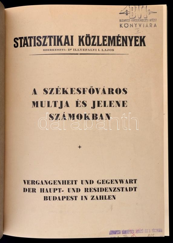 A székesfőváros multja és jelene számokban. Statisztikai Közlemények. ... https://www.darabanth.com/de/307-Fernauktion/307.0/Bucher/Bucher-Reise-und-Ortgeschichte~500001/A-szekesfovaros-multja-es-jelene-szamokban-Statisztikai-Kozlemenyek-Bp-1934-Szekesfov~II1659831