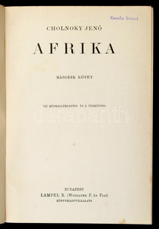 Cholnoky Jenő: Afrika. 1-2. köt. Bp., é. n., Lampel (A Magyar Földrajzi Társaság Könyvtára). Kicsit kopott gerincű díszes vászonkötésben, jó állapotban.