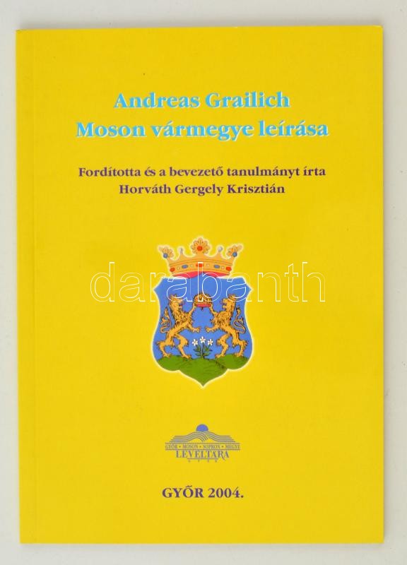 Grailich, Andreas: Moson vármegye leírása. Fordította és a bevezető tanulmányt írta Horváth Gergely Krisztián. Győr, 2004. Kiadói papírkötés, két kihajtható térképmelléklettel, jó állapotban.