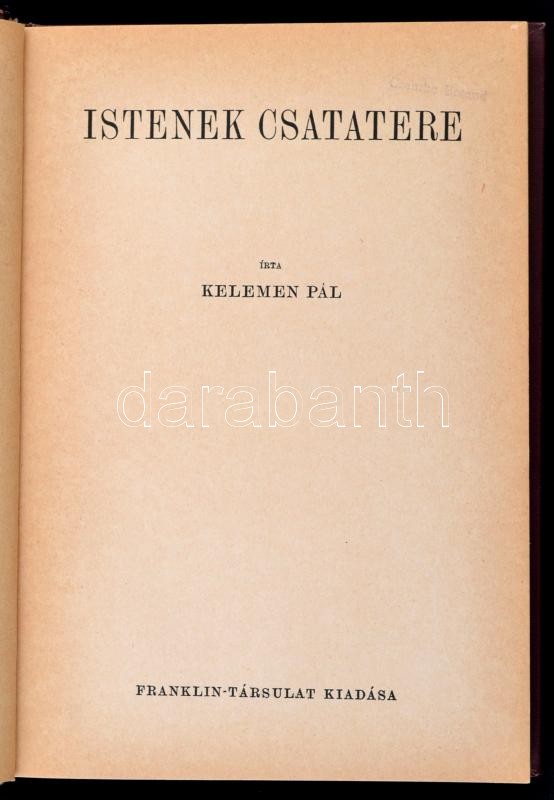 Kelemen Pál: Istenek csatatere. Bp., é. n., Franklin (A Magyar Földrajzi Társaság Könyvtára). Kicsit kopott vászonkötésben, jó állapotban.