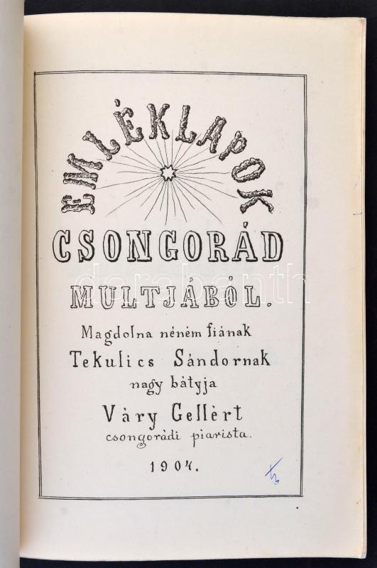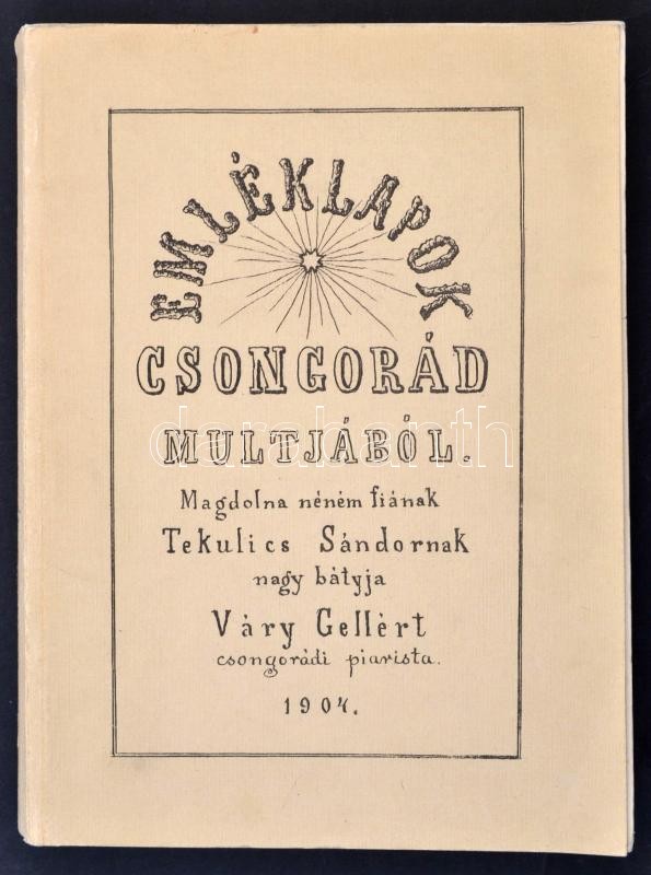 Váry Gellért: Emléklapok Csongrád múltjából. Összeáll.: Tari László. [Szeged], 1974, Somogyi-könyvtár. Az 1904. évi kiadás hasonmás kiadása. Készült 1000 példányban. Papírkötésben, jó állapotban.