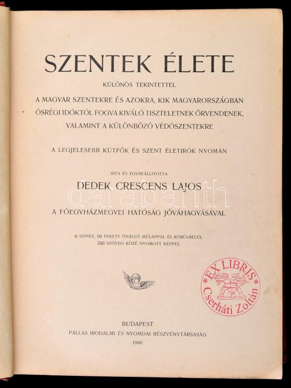 Dedek Crescens Lajos: Szentek élete. 1-2. köt. Bp., 1900, Pallas. Kopo... https://www.darabanth.com/de/307-Fernauktion/307.0/Bucher/Bucher-Religion~500013/Dedek-Crescens-Lajos-Szentek-elete-1-2-kot-Bp-1900-Pallas-Kopott-utolag-ragasztott-gerin~II1666174
