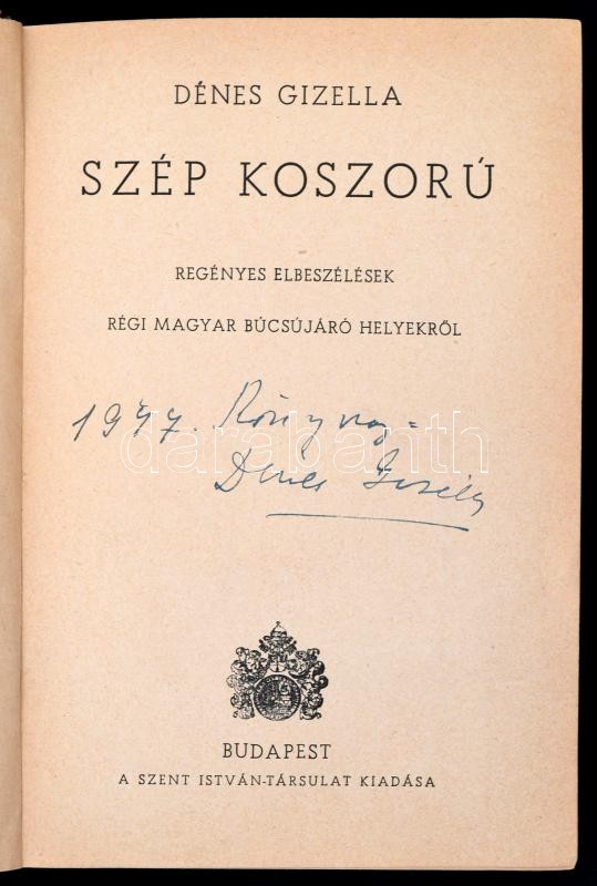 Dénes Gizella: Szép koszorú. Regényes elbeszélések régi magyar búcsújá... https://www.darabanth.com/de/307-Fernauktion/307.0/Bucher/Bucher-Religion~500013/Denes-Gizella-Szep-koszoru-Regenyes-elbeszelesek-regi-magyar-bucsujaro-helyekrol-Bp-~II1659058