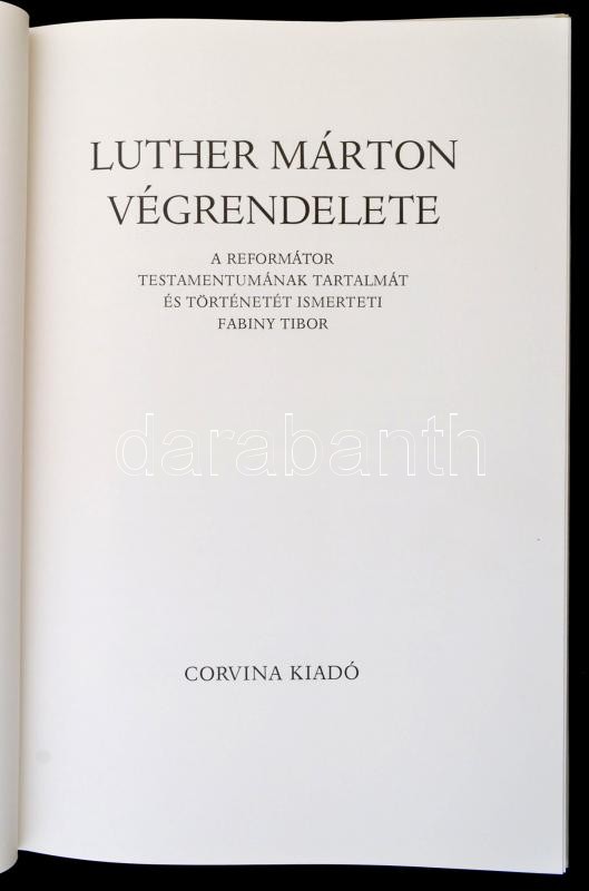 Luther Márton végrendelete. A reformátor testamentumának tartalmát és történetét ismerteti Fabiny Tibor. Budapest, 1982, Corvina. Kiadói kartonált papírkötés, kiadói papírborítóban, papír védőborítóban. Jó állapotban.