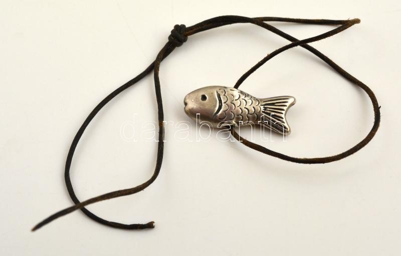 Ezüst(Ag) hal, jelzés nélkül, bőr szíjon, 2,5x1 cm, bruttó: 1,3 g https://www.darabanth.com/de/307-Fernauktion/307.0/Juwelen/Juwelen~500021/EzustAg-hal-jelzes-nelkul-bor-szijon-2-5x1-cm-brutto-1-3-g~II1659462
