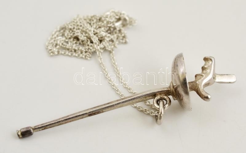 Beschreibung: Ezüst(Ag) lánc párbajtőr medállal, jelzett, h: 38 cm, nettó: 2,9 g