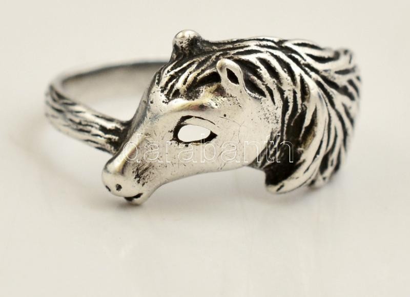 Ezüst(Ag) lófejes gyűrű, jelzett, méret: 53, nettó: 2,7 g https://www.darabanth.com/de/307-Fernauktion/307.0/Juwelen/Juwelen~500021/EzustAg-lofejes-gyuru-jelzett-meret-53-netto-2-7-g~II1667616