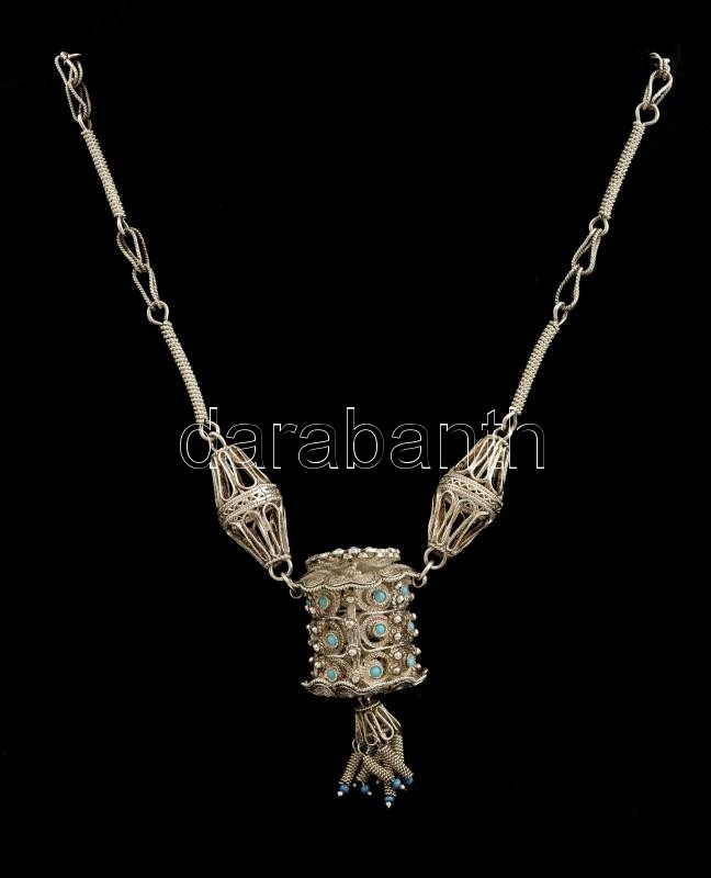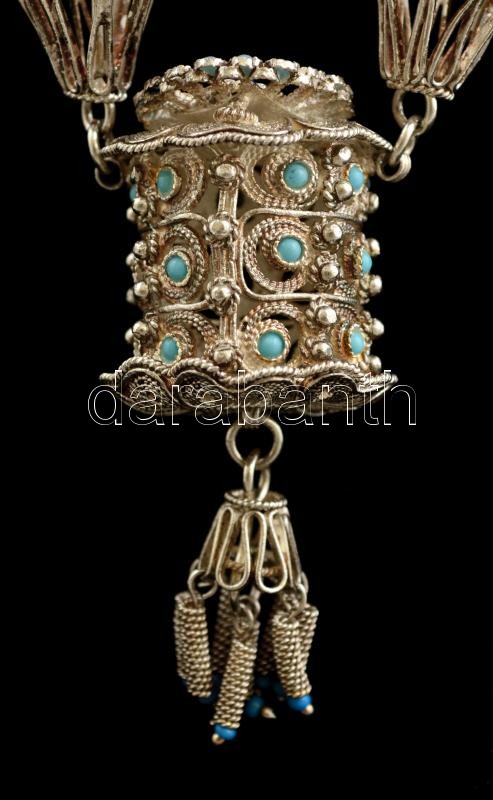 Beschreibung: Ezüst(Ag) nyakék, hiányos szintetikus kő díszítéssel, jelzett, h: 43 cm, bruttó: 50,4 g