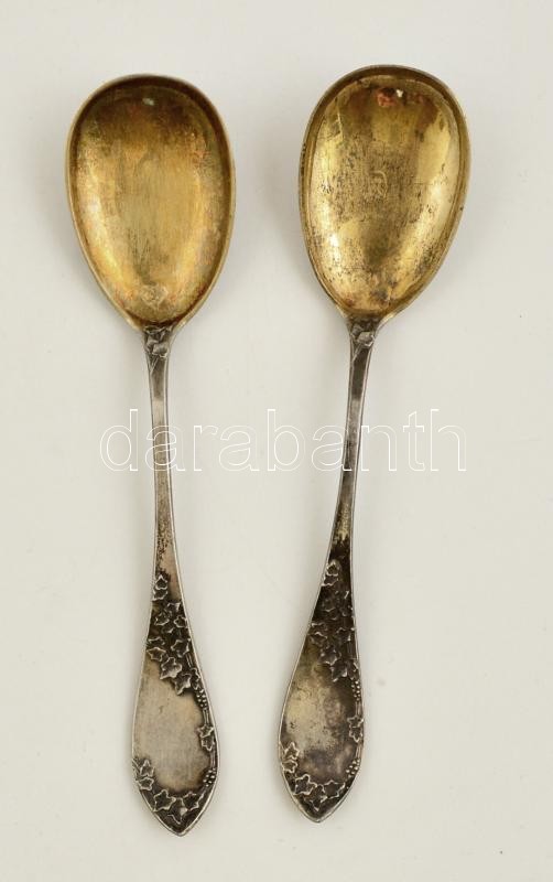 Beschreibung: Szecessziós ezüst (Ag.) desszertes kis kanál párban (2db), jelzett, h:13,5 cm (2×), nettó:46 g