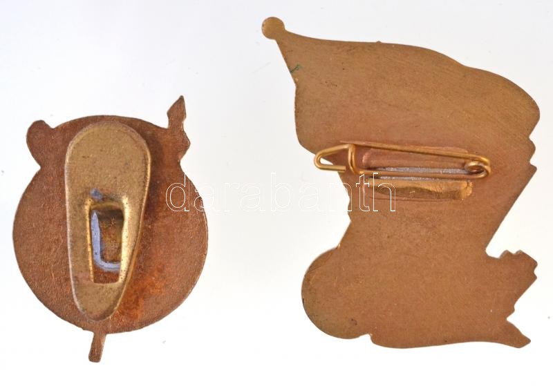 1946. "II. Országos Sportnapok" zománcozott fém gomblyukjelvény (19x27mm) + 1949. "MHK" aranyozott jelvény (27x33mm) T:2