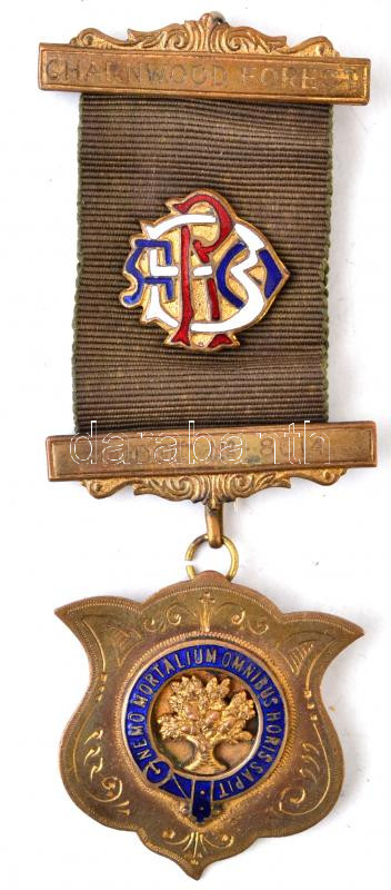 Beschreibung: Nagy-Britannia DN "Királyi Aggastyán Bölények Rendje - Charnwood Forest" aranyozott, zománcozott, számozott Br szabadkőművességet imitáló szervezet jelvénye szalaggal T:2
