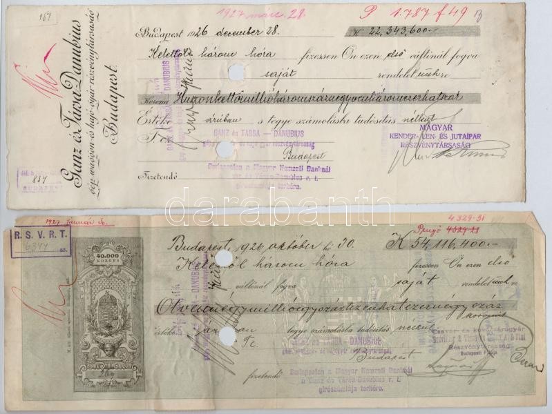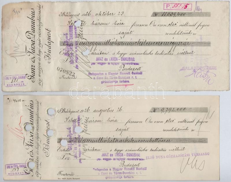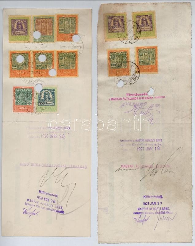 Budapest 1926-1927. 10db-os vegyes váltó tétel, mind kitöltött vagy félig kitöltött, váltóbélyegekkel, legtöbb bélyegzésekkel és pecsétekkel, mind lyukasztással érvénytelenítve, benne "Csavar- és kovácsárugyár Brevillier & Társa és Urban A. & Fiai Részvénytársaság Budapesti fiókja", "Magyar Kender- Len- és Jutaipar Részvénytársaság", "Magyar Fanto Művek Részvény-társaság" bélyegzések T:III,III-