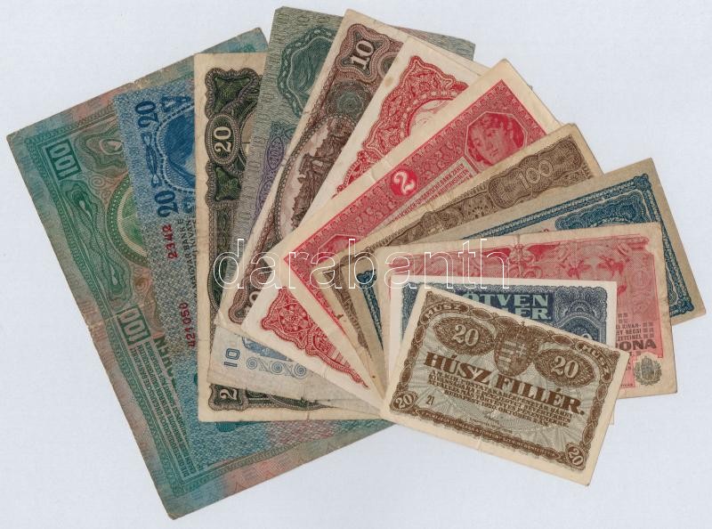 1912-1923. 12db-os vegyes magyar korona bankjegy tétel T:III,III- https://www.darabanth.com/de/307-Fernauktion/307.0/Numismatik/Ungarische-Banknoten~300007/1912-1923-12db-os-vegyes-magyar-korona-bankjegy-tetel-TIII-III-~II1659802