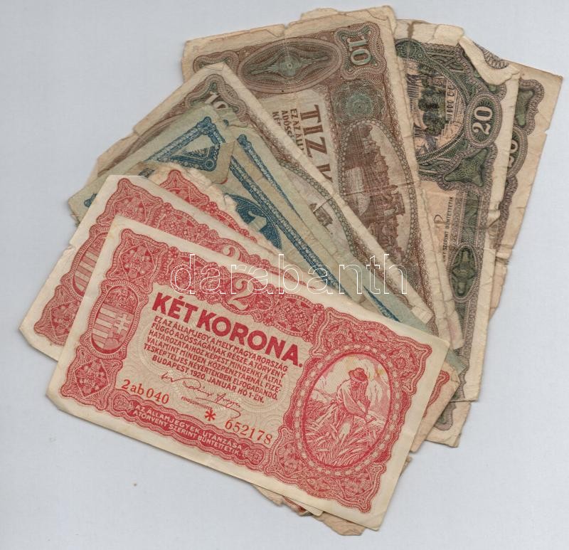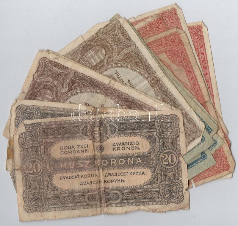 1920. 15db-os vegyes magyar korona bankjegy tétel T:III-IV https://www.darabanth.com/de/307-Fernauktion/307.0/Numismatik/Ungarische-Banknoten~300007/1920-15db-os-vegyes-magyar-korona-bankjegy-tetel-TIII-IV~II1617505