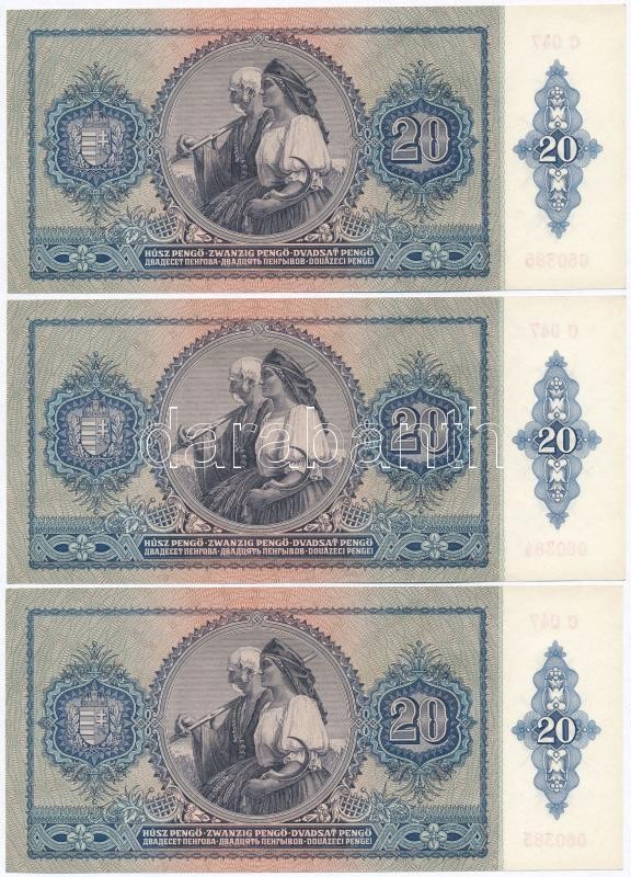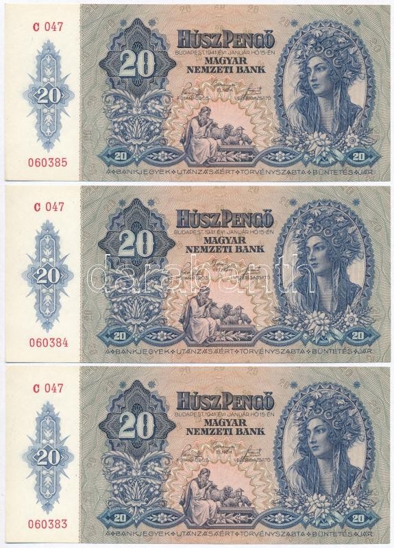 1941. 20P (3x) sorszámkövetők T:I https://www.darabanth.com/de/307-Fernauktion/307.0/Numismatik/Ungarische-Banknoten~300007/1941-20P-3x-sorszamkovetok-TI~II1663551