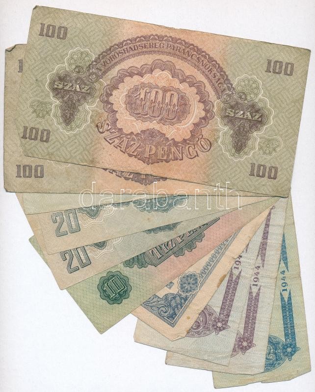 1944. 1P-100P (10x) "A Vörös Hadsereg Parancsnoksága" T:III,... https://www.darabanth.com/de/307-Fernauktion/307.0/Numismatik/Ungarische-Banknoten~300007/1944-1P-100P-10x-A-Voros-Hadsereg-Parancsnoksaga-TIII-III-~II1660293