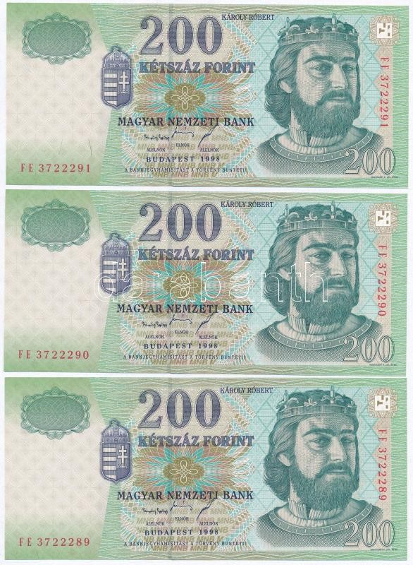 Beschreibung: 1998. 200Ft (5x) sorszámkövetők, "FE" betűjel T:I