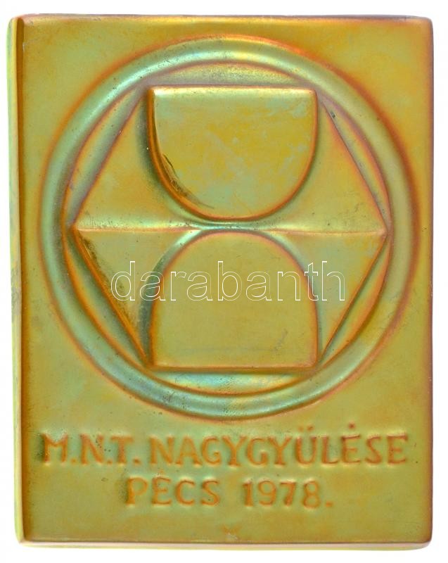 1978. "MNT Nagygyűlése Pécs" eozin mázas Zsolnay kerámia pla... https://www.darabanth.com/de/307-Fernauktion/307.0/Numismatik/Ungarische-Gedenkmunzen-Plaketten~300009/1978-MNT-Nagygyulese-Pecs-eozin-mazas-Zsolnay-keramia-plakett-hatoldalan-lyukak-akasztas~II1664503