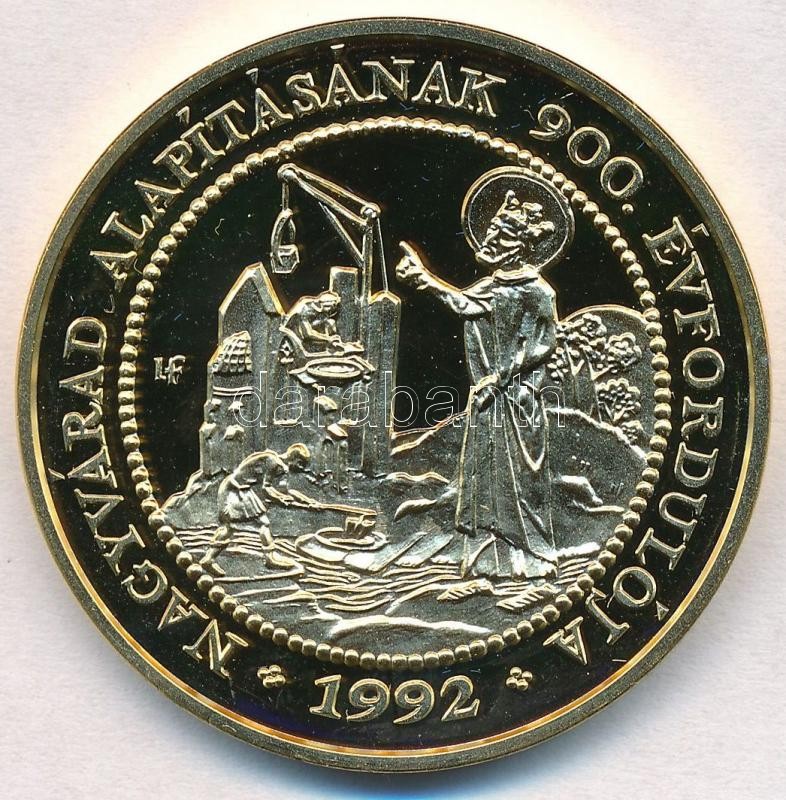Lebó Ferenc (1960-) 1992. "László király szentté avatásának 800. évfordulója / Nagyvárad alapításának 900. évfordulója" aranyozott emlékérem eredeti dísztokban (42,5mm) T:PP