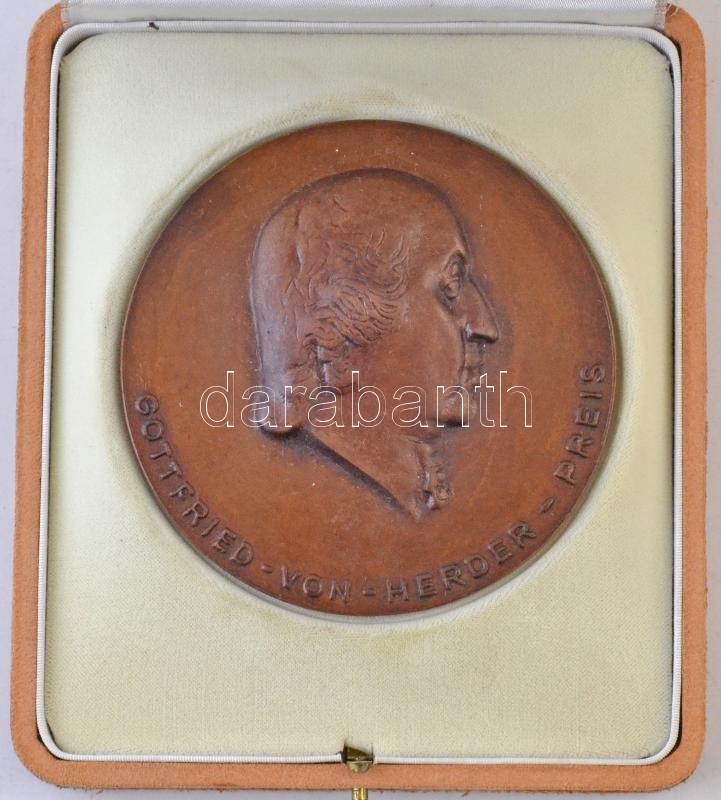 NSZK 1974. "Gottfried-von-Herrder-Preis / Hamburg" Br emlékérem eredeti dísztokban (90mm) T:2
