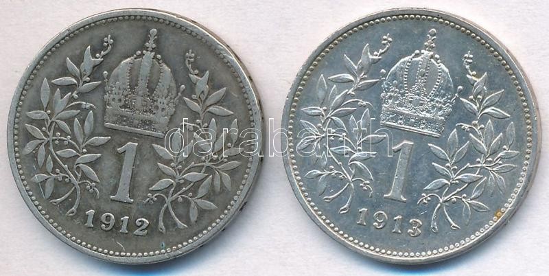 Beschreibung: Ausztria 1912-1913. 1K Ag "Ferenc József" (2x) T:2