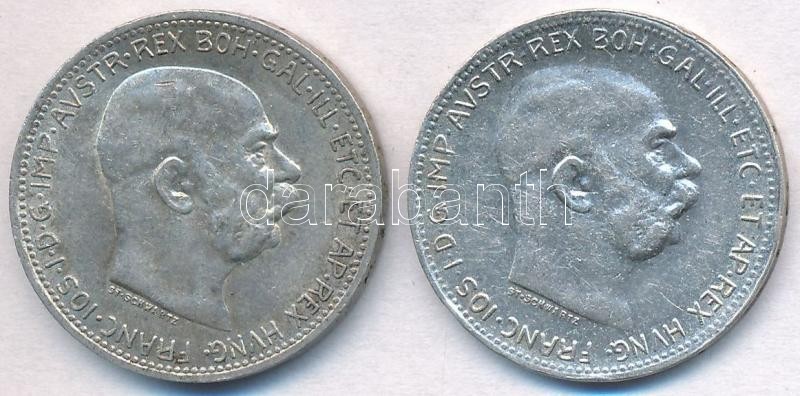 Beschreibung: Ausztria 1915-1916. 1K Ag "Ferenc József" (2x) T:2