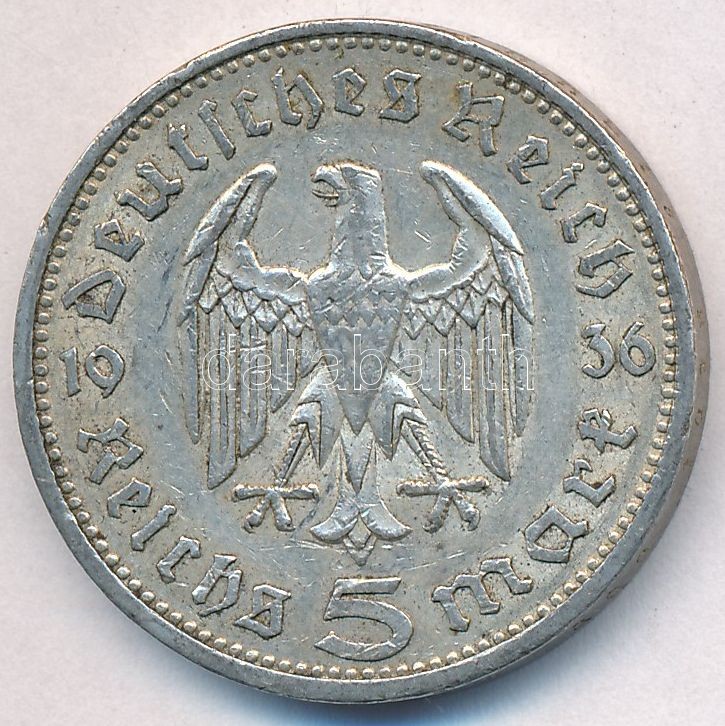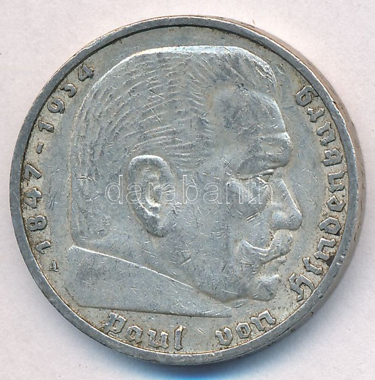 German Third Reich 1936A 5 Marks Ag "Hindenburg" C:XF,VF small edge error