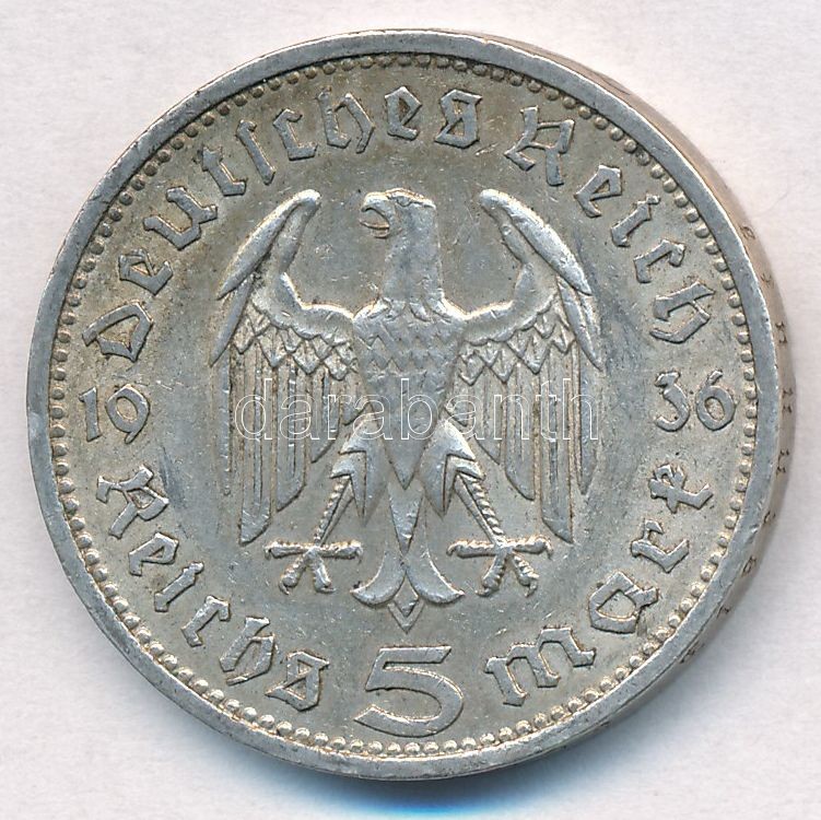 ... https://www.darabanth.com/de/307-Fernauktion/307.0/Numismatik/Weltweit-Munzen~300013/Nemet-Harmadik-Birodalom-1936A-5M-Ag-Hindenburg-T2-ph---German-Third-Reich-1936A-5-Mark-Ag-Hin~II1638782