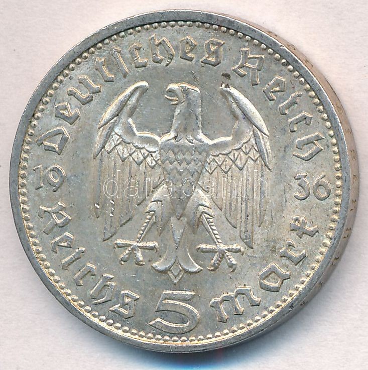 Ge... https://www.darabanth.com/de/307-Fernauktion/307.0/Numismatik/Weltweit-Munzen~300013/Nemet-Harmadik-Birodalom-1936E-5M-Ag-Hindenburg-T1-2--German-Third-Reich-1936E-5-Mark-Ag-Hinde~II1660334