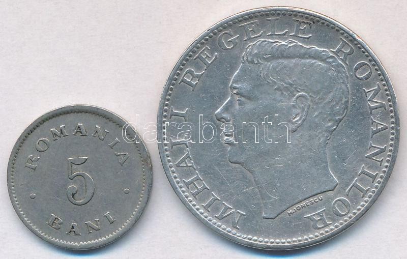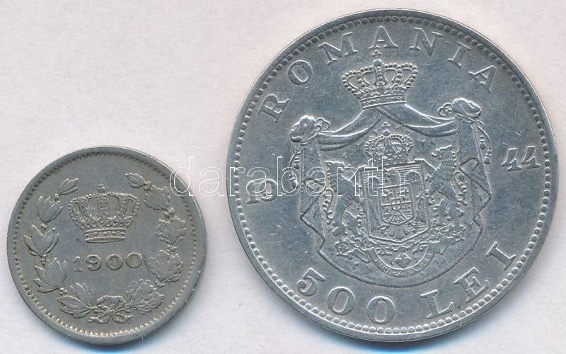 Románia 1900. 5b Cu-Ni + 1944. 500L Ag "I. Mihály" T:2 kis ph. Romania 1900. 5 Bani Cu-Ni + 1944. 500 Lei Ag "Mihai I" C:XF small edge error Krause KM#28, KM#65