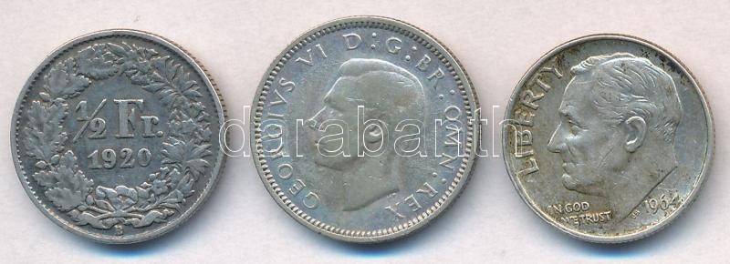 Svájc 1920B 1/2Fr Ag + Nagy-Britannia 1938. 6p Ag "VI. György" + Amerikai Egyesült Államok 1964. 1d Ag "Roosevelt" T:2,2-