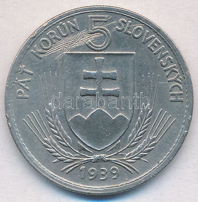 Szlovákia 1939. 5K Ni T:2,2- karc, ph. Slovakia 1939. 5 Korun Ni C:XF,VF scratched, edge error Krause KM#2