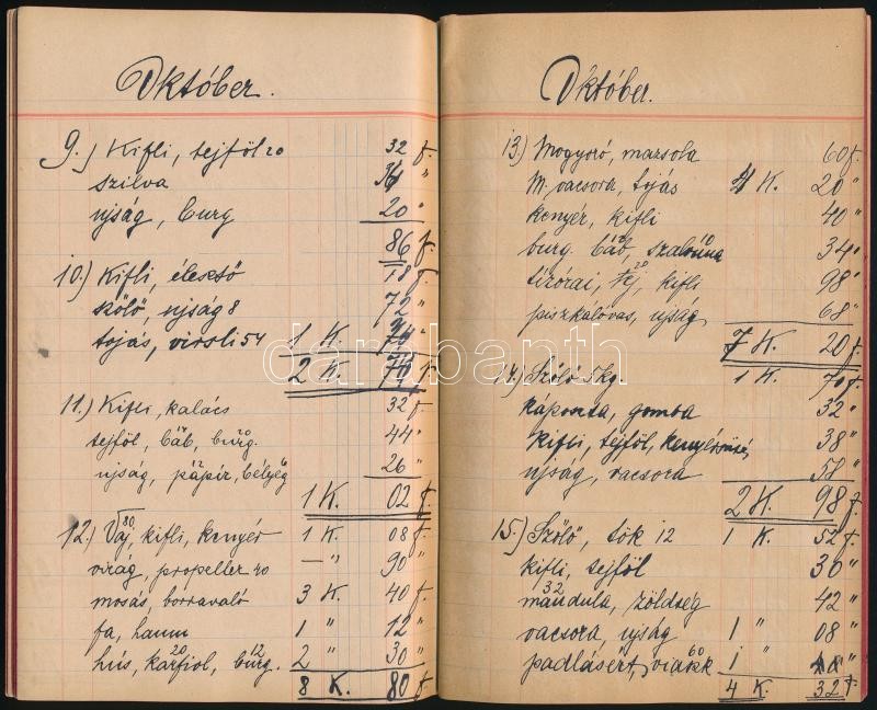 1908 Bp., Kézzel írt háztartási napló 10 hónapra https://www.darabanth.com/de/308-Fernauktion/308.0/Andere-Sammelgebiete/Dokument~16/1908-Bp-Kezzel-irt-haztartasi-naplo-10-honapra~II1674025