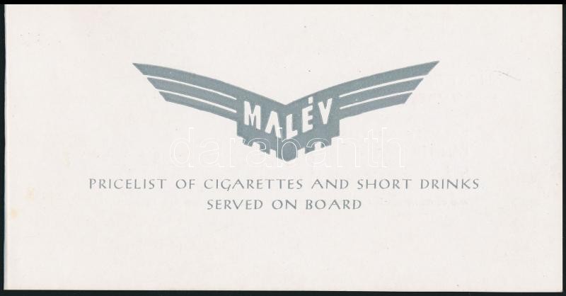 cca 1970 a Malév angol nyelvű cigaretta- és italár-jegyzéke https://www.darabanth.com/de/308-Fernauktion/308.0/Andere-Sammelgebiete/Drucksachen~27/cca-1970-a-Malev-angol-nyelvu-cigaretta-es-italar-jegyzeke~II1670367