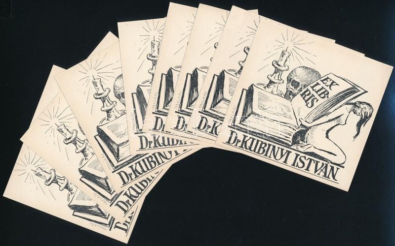 Beschreibung: Maklári jelzéssel: Ex libris Kubinyi István, 8 db ex libris, fametszet, papír, 10×10,5 cm