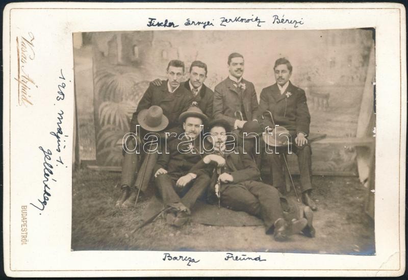 Beschreibung: 1903 Bp., Társaság a Gellért-hegyen, fotó Vasas Árpád műterméből, 9x12 cm