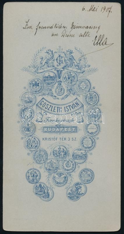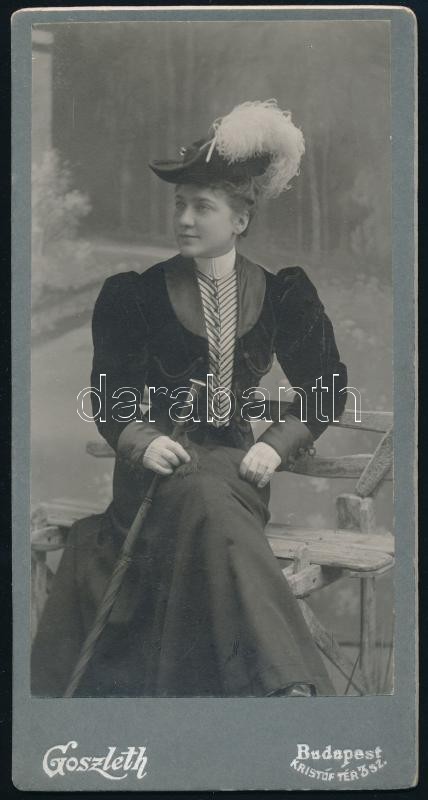 1907 Hölgy műtermi portréja, keményhátú fotó Goszleth budapesti műterm... https://www.darabanth.com/de/308-Fernauktion/308.0/Andere-Sammelgebiete/Foto~19/1907-Holgy-mutermi-portreja-kemenyhatu-foto-Goszleth-budapesti-mutermebol-15x8-cm~II1677347
