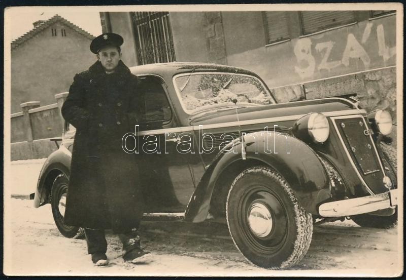 1940 Bp., Szolgálati autó Szálasi feliratú ház előtt, 5,5x8 cm https://www.darabanth.com/de/308-Fernauktion/308.0/Andere-Sammelgebiete/Foto~19/1940-Bp-Szolgalati-auto-Szalasi-feliratu-haz-elott-5-5x8-cm~II1675578