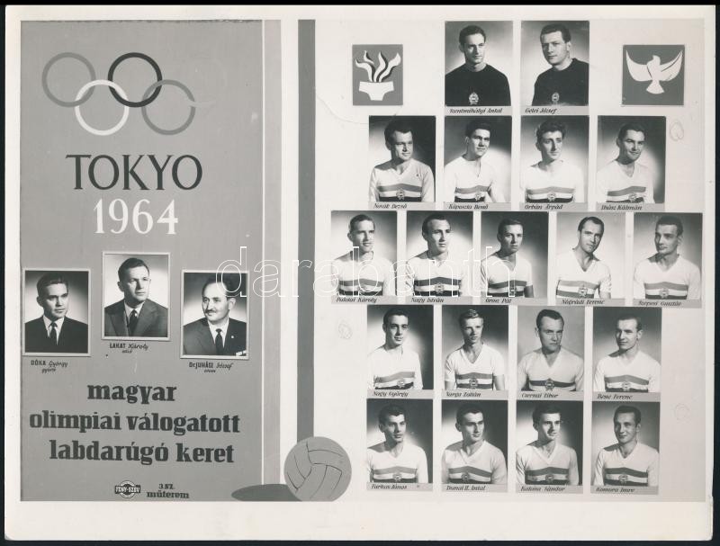 1964 A tokiói olimpiai magyar labdarúgó válogatott tablóképe, 18,5×24 ... https://www.darabanth.com/de/308-Fernauktion/308.0/Andere-Sammelgebiete/Foto~19/1964-A-tokioi-olimpiai-magyar-labdarugo-valogatott-tablokepe-18-5C39724-cm~II1670442