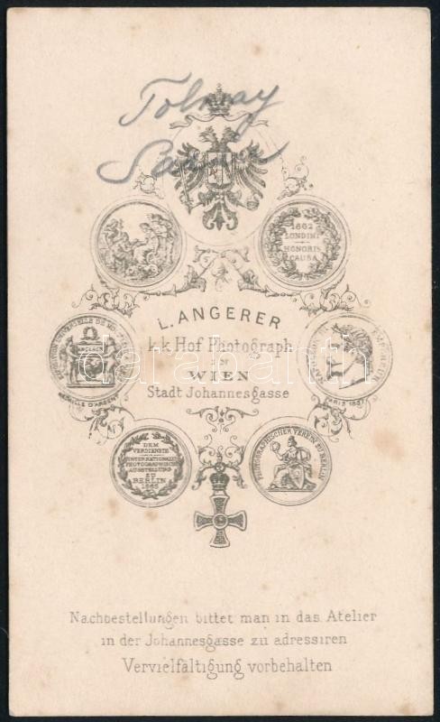 cca 1860 Tolnay Sándor (?-?) portréja, keményhátú fotó Angerer bécsi m... https://www.darabanth.com/de/308-Fernauktion/308.0/Andere-Sammelgebiete/Foto~19/cca-1860-Tolnay-Sandor--portreja-kemenyhatu-foto-Angerer-becsi-mutermebol-hatulja~II1674933