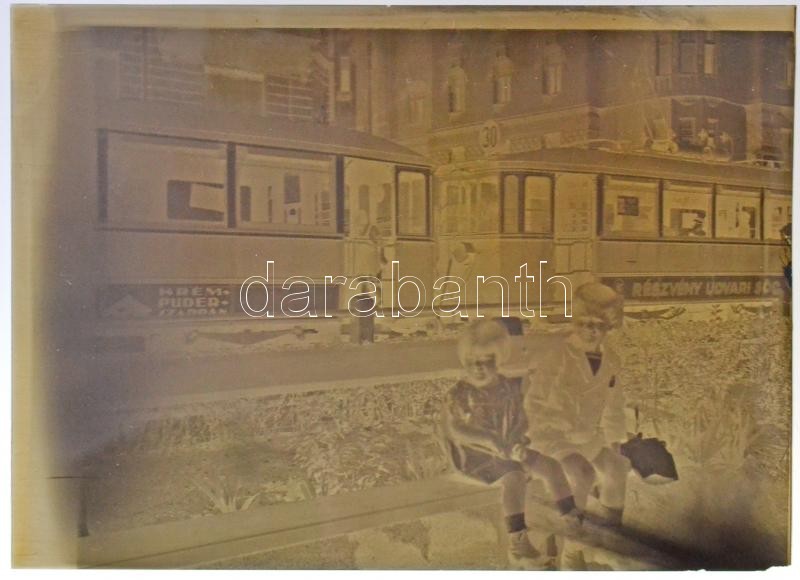 Beschreibung: cca 1930 A 30-as villamos valahol a Mester utcánál, fotónegatív, 8,5×12 cm