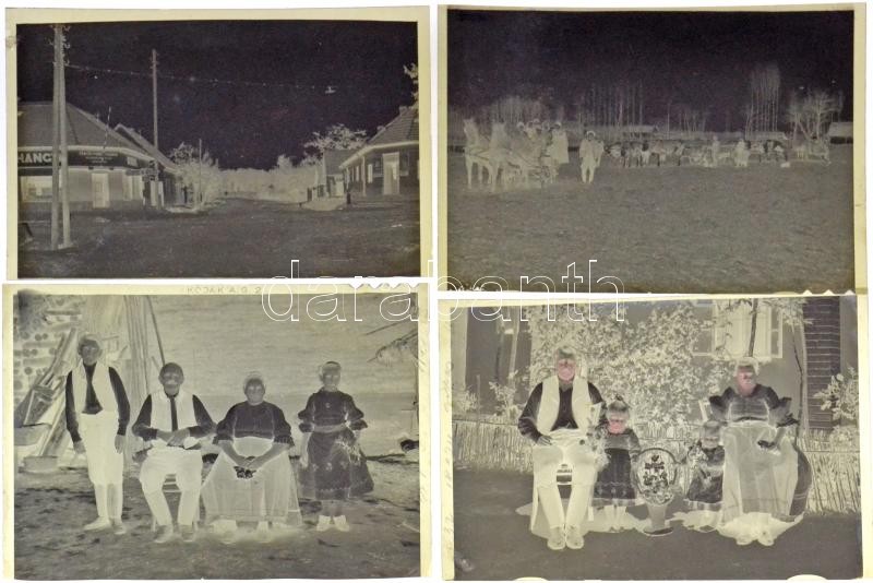 cca 1935 Bács-Kiskun megyei tanyák, gazdálkodók, Lőcsei Árpád (?-?) kecskeméti vándorfényképész hagyatékában őrzött 9 db síkfilm negatívról készült mai nagyítások, 9x12 cm